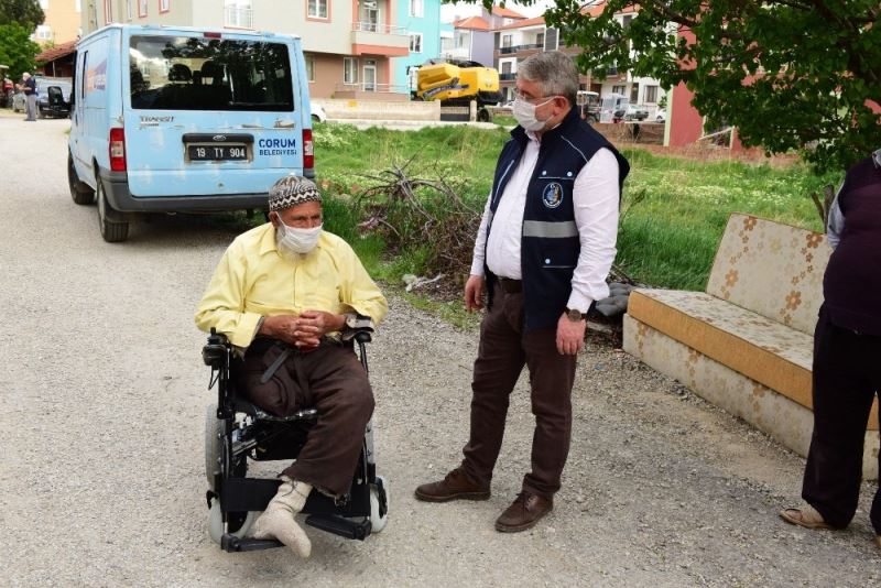 Çorum Belediyesi Sosyal Yardım İşleri Müdürlüğü personeli ile birlikte akülü aracı teslim etmek için İbiş dede’nin evine giden Başkan Aşgın, “İbiş dedemize gıda bankamızdan da düzenli olarak gıda yardımlarımızı ulaştırıyoruz. Ramazan ayı içerisinde de her gün sıcak yemeğini evine kadar götürüyoruz. 72 yaşında yalnız yaşıyor. Ayaklarından rahatsız. Hayata hiç küsmemiş bir büyüğümüz. Bu şartlarda orucunu aksatmadan tutan İbiş dedemize Ramazan ayı içerisinde her türlü yardımı yapıyoruz” şeklinde konuştu.