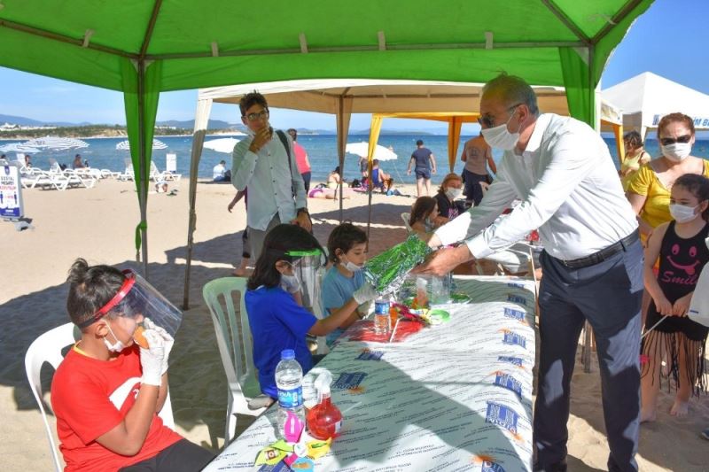 Altınkum Plajına kurulan çadırlarda, çevre günü hakkında çocuklara bilgiler verilirken, Doğamızı ve kendimizi bu süreçte daha sağlıklı korumamız amacıyla, belediye serasında üretilen doğal biberiye, nane yağları çocuklara dağıtılarak belediye personelleri ile birlikte doğal dezenfektan yapımı gerçekleştirildi. Didim Belediyesi İş Güvenliği Uzmanı Sercan Işıklar, Belediye tarafından dağıtılan maskelerin kullanımı ve sosyal mesafelerin sağlanması ile ilgili katılımcılara bilgiler verdi.