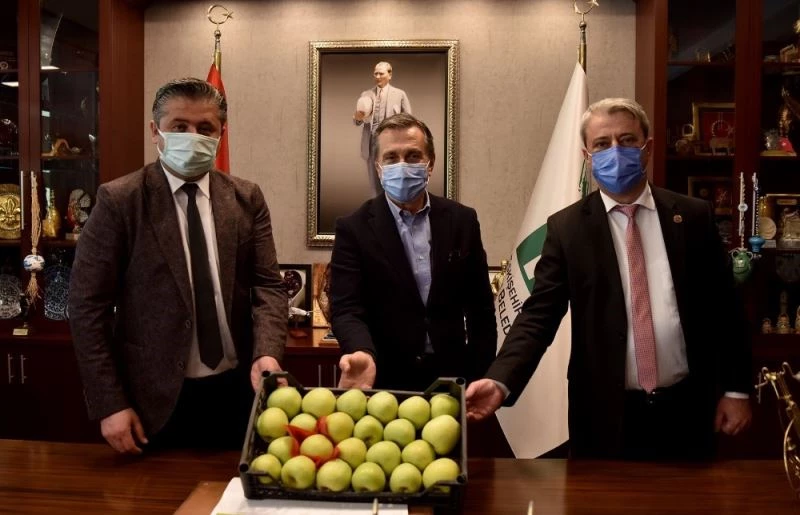 Çanakkaleli konuklar, Başkan Ataç’a kooperatif bünyesinde üretilen elmalardan hediye etti. Başkan Ataç da misafirlerine, “Eskişehir: Kökleri Derinde Yepyeni Bir Şehir” kitabını armağan etti.