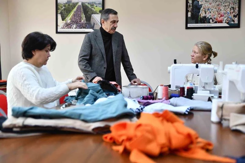 Tepebaşı Belediye Başkanı Dt. Ahmet Ataç, depremzedelere destek olmak amacıyla kıyafet diken belde evi kursiyerlerini ziyaret etti.