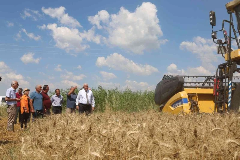 Aydın’ın Efeler ilçesinde Efeler Belediye Başkanı Mehmet Fatih Atay, Efeler Belediyesi’nin kendi arazisinde toprakla buluşturduğu ekmeklik buğdayın ilk hasadını yaptı.