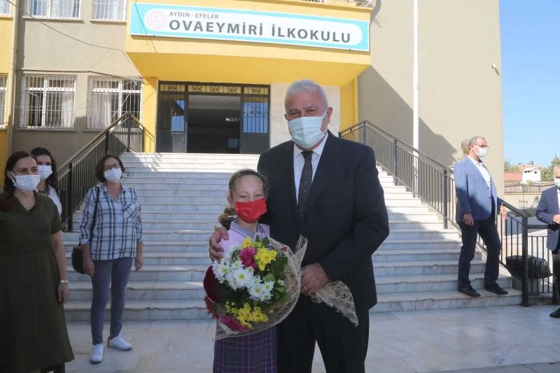 Korona virüs salgını öncesinde Efeler’deki öğrencilerle çeşitli programlar kapsamında bir araya gelen Efeler Belediye Başkanı Mehmet Fatih Atay, yüz yüze eğitimin başlamasının ardından ilçedeki öğrencilerle tekrar buluştu. Ovaeymiri İlkokulu’nda büyük ilgi ve sevgiyle karşılanan Başkan Atay, öğretmenlerin 5 Ekim Dünya Öğretmenler Günü’nü kutlarken öğrencilere akıl oyun seti armağan etti. Tüm öğretmen ve öğrencileri 6 Ekim Çarşamba günü açılışı yapılacak olan Prof. Dr. Aziz Sancar Matematik ve Bilim Parkı’na davet eden Başkan Atay öğrencilere, “Sizin gelişiminiz için ne gerekiyorsa yapmaya devam edeceğiz. Sporda, sanatta yeteneklerinizin ortaya çıkması ve geliştirilmesi gereken olanakları size sağlayacağız. Sizden sadece derslerinize iyi çalışmanızı, öğretmenlerinizin ve anne-babalarınızın sözlerini dinlemenizi istiyorum. Sizin iyi yetişmeniz için çalışmak da bizim görevimiz. Başarılarınızın devamını diliyorum” diye konuştu. Başkan Atay, ziyaretin sonunda miniklerle birlikte bol bol hatıra fotoğrafı çektirdi.