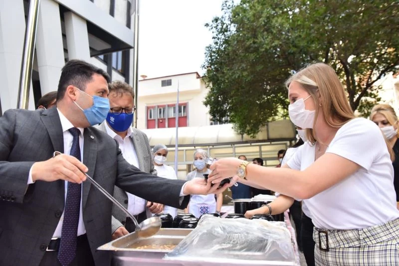 Altıeylül Belediye Başkanı Hasan Avcı, Muharrem ayı nedeniyle belediye binası önünde vatandaşlara aşure etkinliği düzenledi.