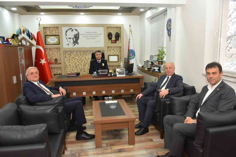 Başkan Bakkalcıoğlu İlçe Emniyet Müdürlüğü’ne gerçekleştirdiği ziyarette beraberindeki Başkan Yardımcıları Mahmut Fındık ve Ali Şahinoğlu ile birlikte Emniyet Müdürü Orhan Bozdemir ile bir süre görüşerek sohbet etti, tüm emniyet teşkilatının Polis Haftasını kutladı. Başkan Bakkalcıoğlu, ilçenin güvenliğini sağlayan polislerin görevlerini zor şartlarda yerine getirdiklerini belirterek “ Vatandaşımızın can ve mal güvenliğinin teminatı olan Emniyet Teşkilatımız, bir hukuk devleti olan Türkiye Cumhuriyeti’nin temel kurumlarından biridir. Türk Polis Teşkilatının 178. kuruluş yıl dönümünü kutluyor, görevini ifa ederken canlarını vatanımız için feda eden tüm şehitlerimize Allah’tan rahmet, gazilerimize sağlıklı ömürler ve emniyet teşkilatımızın değerli mensuplarına çalışmalarında başarılar diliyorum.” dedi.