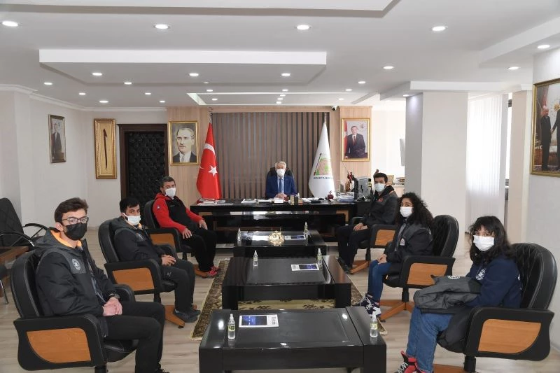 Davraz Kayak Spor Kulübü Başkanı Kubilay Oktay Başyiğit ve kayak sporcuları, Isparta Belediye Başkanı Şükrü Başdeğirmen’i makamında ziyaret ederek, spora verilen desteklerden dolayı teşekkür etti.