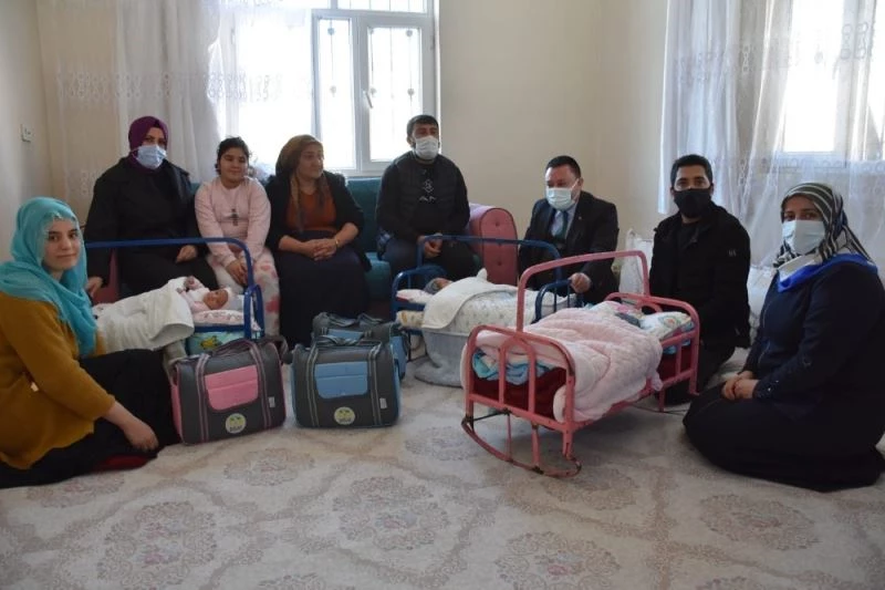 Başkan Beyoğlu’ndan üçüzleri olan aileye bebek çantası hediyesi