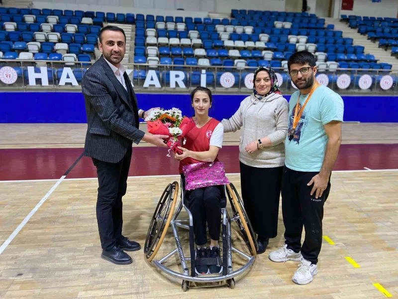 AK Parti Hakkari İl Gençlik Kolları Başkanı Kenan Beyter, bir süre önce İspanya’nın Madrid kentinde gerçekleştirilen Kadınlar Avrupa Şampiyonasına Tekerlekli Sandalye Basketbol A Milli Takımı ile katılan Hakkarili Ceylan Yılmaz’ı tebrik ederek çiçek ve hediyeler takdim etti.