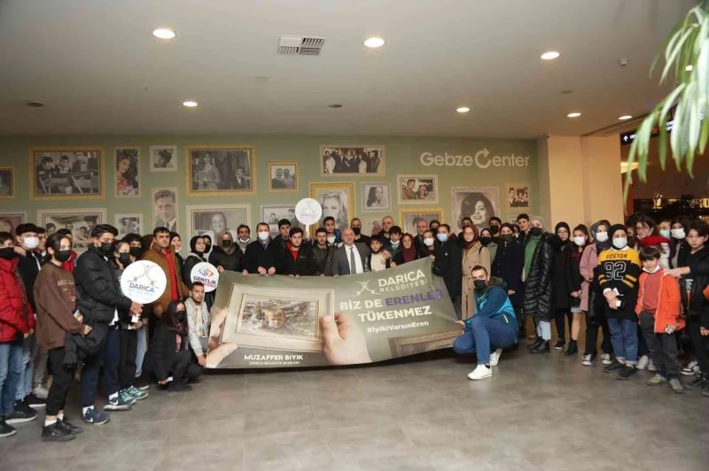 Darıca Belediye Başkanı Muzaffer Bıyık, sosyal medya üzerinden çekilişle belirlenen 105 genç ile birlikte Trabzon’da PKK’lı teröristlerce şehit edilen Eren Bülbül ve Astsubay Kıdemli Başçavuş Ferhat Gedik’in yaşam öyküsünü anlatan “Kesişme: İyi ki Varsın Eren” filmini izledi.