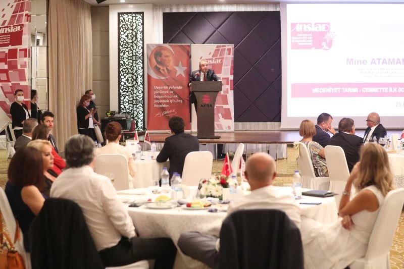 Antalya Büyükşehir Belediye Başkanı Muhittin Böcek, Antalya Sanayici ve İş İnsanları Derneği (ANSİAD) ve Konyaaltı Sanayici ve İş İnsanları Derneği’nin (KONYSİAD) uzun bir aradan sonra yüz yüze gerçekleştirilen toplantılarına konuk oldu. İlk olarak ANSİAD’ın 10. Olağan Toplantısı’na katılan Başkan Muhittin Böcek, ‘Medeniyet Tarımı-Cennette İlk Sofra’ konulu sunum gerçekleştiren Mine Ataman’a ANSİAD Başkan Akın Akıncı ile plaket takdim etti. Başkan Muhittin Böcek, ardından Konyaaltı Sanayici ve İş İnsanları Derneği (KONYSİAD) Başkanı İlhami Kaplan ve yönetiminin 15 ay sonra gerçekleştirilen toplantısına katıldı. Böcek, Antalyalı iş insanlarına belediye hizmetlerini ve projelerini anlattı.