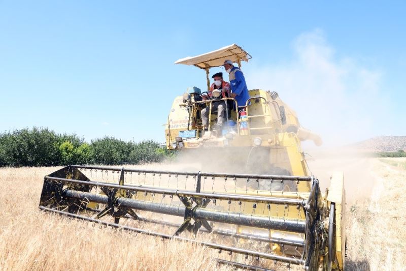 Başkan Böcek biçerdöverin direksiyonuna geçip hasat sevincine ortak oldu