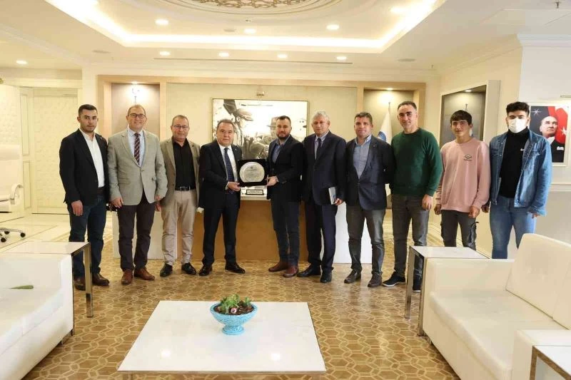 Antalya Beşkonaklılar Birlik ve Beraberlik Dernek Başkanı Hakan Halim Okudan ve şampiyon sporcuları bir kez daha makamında ağırlayan Başkan Muhittin Böcek, başarılı sporcuları desteklemekten her zaman mutluluk duyduğunu söyledi. Başkan Böcek, “Atatürk’ün “Ben sporcunun, zeki, çevik aynı zamanda ahlaklısını severim” dediği gibi böylesi güzel evlatlarımızın, sporcularımızın her daim yanlarında olduğumu bilmelerini isterim” dedi.