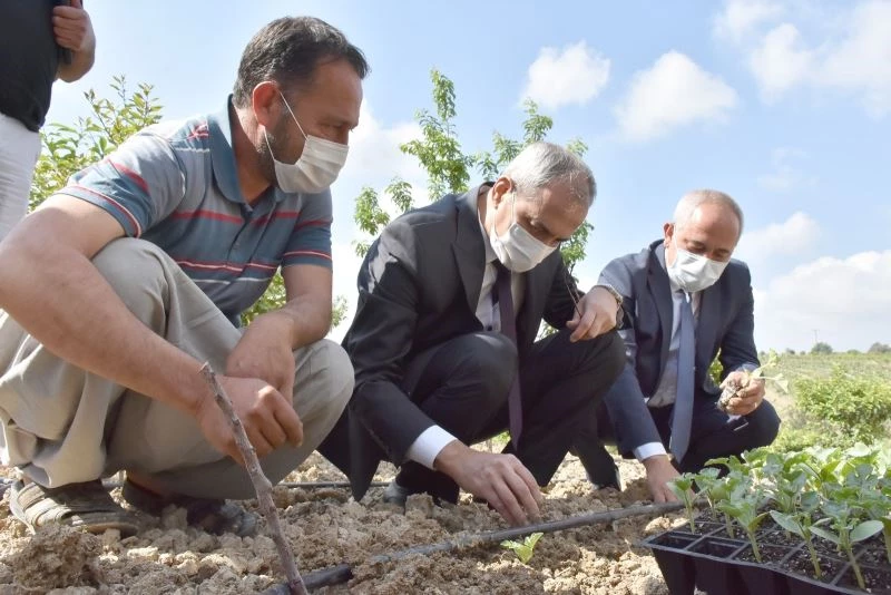 Kavun ve karpuz fidelerinin ekimi için çiftçiler ile bir araya gelen Başkan Haluk Bozdoğan, kendi elleriyle fideleri toprakla buluştururdu.