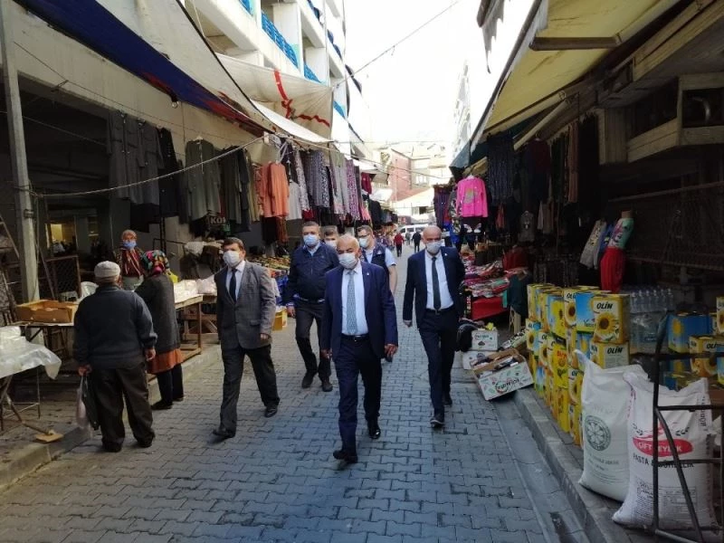 Pazaryeri esnafını ziyaret eden Başkan Çetin Bozkurt, esnafa “Hayırlı işler ve bol kazançlar” dileğinde bulunarak sorunlarının olup olmadığını sordu. Pazara gelen vatandaşlarla da sohbet etti. Pandemi kurallarına uyma konusunda uyarılarda bulundu. Koranavirüsle mücadelede alınan kurallara uymanın hayati öneme sahip olduğunu ifade eden Başkan Bozkurt, “Vatandaşlarımızın, ihtiyaçlarını karşılamak için gittiği pazar yerlerinde tedbirlerimizi en üst seviyeye çıkardık. Zabıta ekiplerimiz aracılığıyla, alınan önlemlerin denetimini düzenli aralıklarla sürdürüyoruz. Her yeni karar sonrası gerek pazar esnafımızı gerekse vatandaşlarımızı bilgilendiriyoruz. Halkımızdan beklentimiz, alınan tedbirlere uymalarıdır. Ancak bu şekilde, içerisinde bulunduğumuz sıkıntılı süreci atlatıp, sağlıklı yarınlara kavuşabiliriz” dedi.