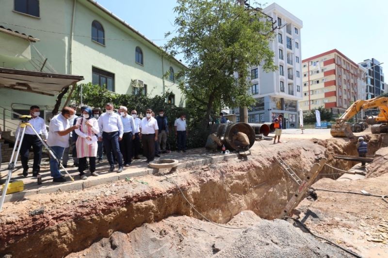 Kocaeli Büyükşehir Belediye Başkanı Tahir Büyükakın, bin 390 kilometre uzunluğunda içme suyu şebekesine ve dört adet içme suyu deposuna sahip, yıllık su tüketimi ise yaklaşık otuz milyon metreküp olan Gebze ilçesindeki içme suyu altyapı çalışmalarını yerinde denetledi. Etap etap devam eden bin 200 milimetrelik CTP ana ishale hattının Arapçeşme Mahallesi’ndeki çelik boru deplase çalışmasını yerinde inceleyen Başkan Büyükakın, “Bize yetki veren ve sorumluluk yükleyen vatandaşlarımızın güvenine layık olmak için ter döküyoruz. Şehrimizin her köşesinde eser ve hizmet üretiyoruz. Bugün buradaki içme suyu altyapımızda bunun en güzel örneklerinden bir tanesidir. Durmayacağız, her daim ileri ve halkımız için eser üretme istikametinden asla ayrılmayacağız. Milletimize verdiğimiz söz gönül ve eser üretme üzerinedir. Durmak yok, yola devam” dedi.