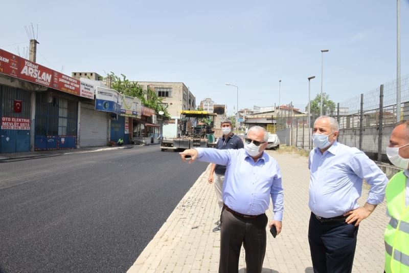 Sokağa çıkma kısıtlaması günlerini fırsata ve hizmete çeviren Gebze Belediyesi Fen İşleri Müdürlüğü’ne bağlı ekipler, asfalt serim ve diğer imalat çalışmalarını sahada sürdürüyor. Tatlıkuyu Mahallesi 1319/1 sokakta sıcak asfalt serim çalışmasının yanı sıra Marmara Nakliyeciler Garajı’ndaki Tır parkında istinat duvarı imalatı sürdüren fen işleri ekiplerinin çalışmalarını sahada denetleyen Belediye Başkanı Zinnur Büyükgöz birim yetkililerinden bilgi aldı.