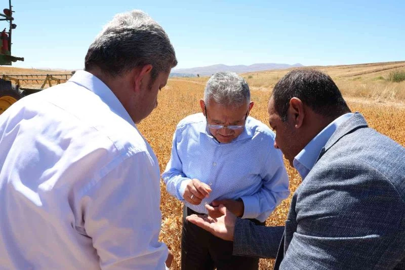 Başkan Büyükkılıç, Bünyan’da biçerdöver kullanarak, aspir hasadı yaptı