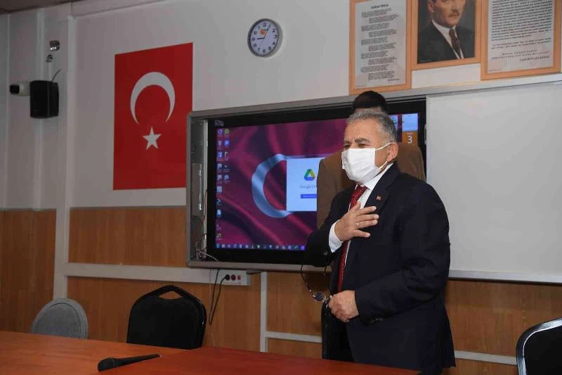 Necdet Taş Anadolu Lisesi ziyaretine Başkan Büyükkılıç’ın yanı sıra Kayseri İl Milli Eğitim Müdürü Ayhan Teltik, Melikgazi İlçe Milli Eğitim Müdürü Hacı Kaya, Okul Müdürü Saim Sönmez ile öğretmenler ve öğrenciler katıldı.