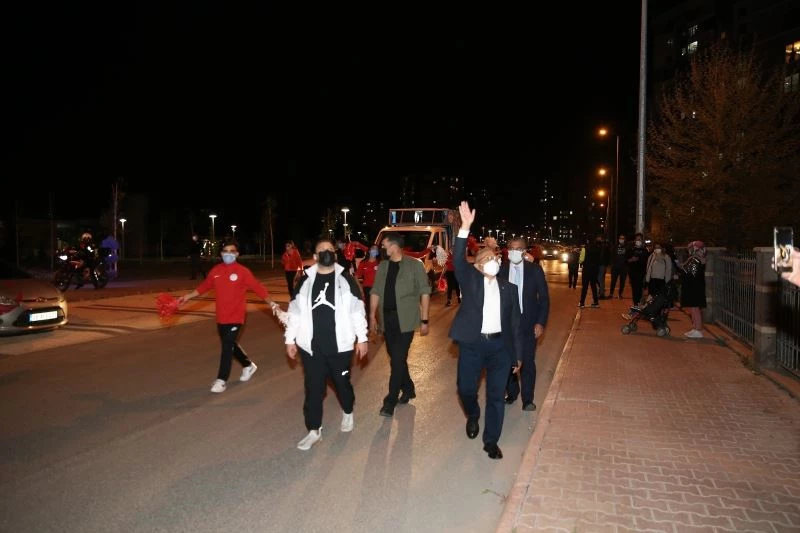 Vatandaşlar da etkinliğe katılan ekiplere hem el sallayıp, teşekkür ettiler hem de balkonlarından cep telefonlarının ışıklarıyla renk kattılar. Başkan Büyükkılıç’a, Spor A.Ş. Genel Müdürü İbrahim Somtaş’ın da eşlik ettiği etkinlik, Türk Bayrağı açılarak sona erdi.