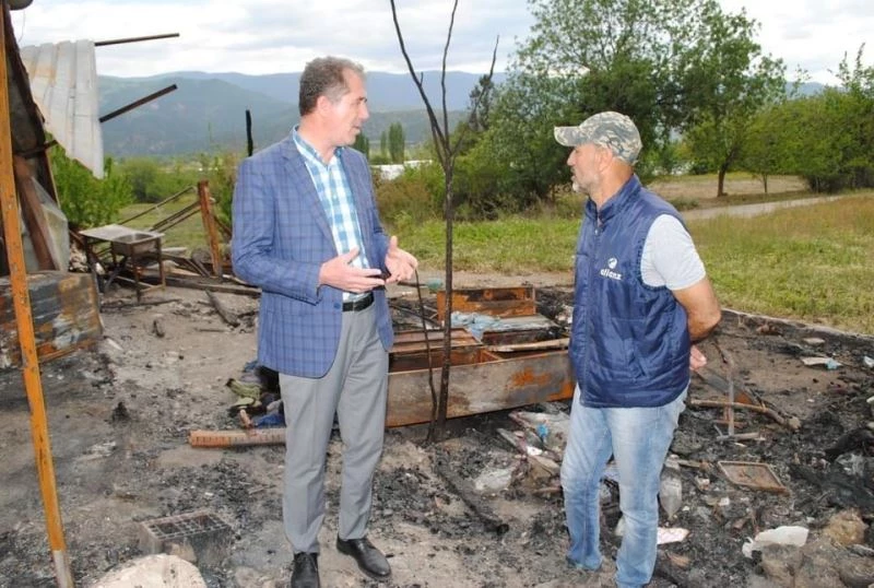 Olay, Sarıcakaya ilçesine bağlı Beyköy Mahallesi’nde geçen hafta meydana gelmişti. Mevsimlik tarım işçisi Musa Yılmaz’ın çadırında, elektrik kontağından çıkan yangında çadır ve park halinde bulunan kamyonet kullanılamaz hale gelmişti. Olayda yaralanan Musa Yılmaz ise 112 Acil Sağlık ekipleri tarafından kaldırıldığı Eskişehir Şehir Hastanesi’nde tedavi altına alınmıştı. Sarıcakaya Belediye Başkanı Hüseyin Çam, yangının yaşandığı alana giderek geçmiş olsun ziyaretinde bulundu. Mevsimlik tarım işçisi aileyle bir araya gelen Çam, olay yerinde de incelemeler yaptı.