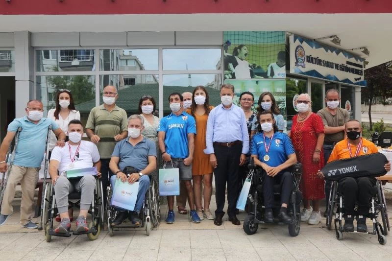 Atakum Belediye Başkanı Av. Cemil Deveci, Samsun’u temsilen ulusal müsabakalarda elde ettikleri başarılar ile herkesi gururlandıran engelli masa tenisi ve badminton sporcularına ödüllerini takdim etti.