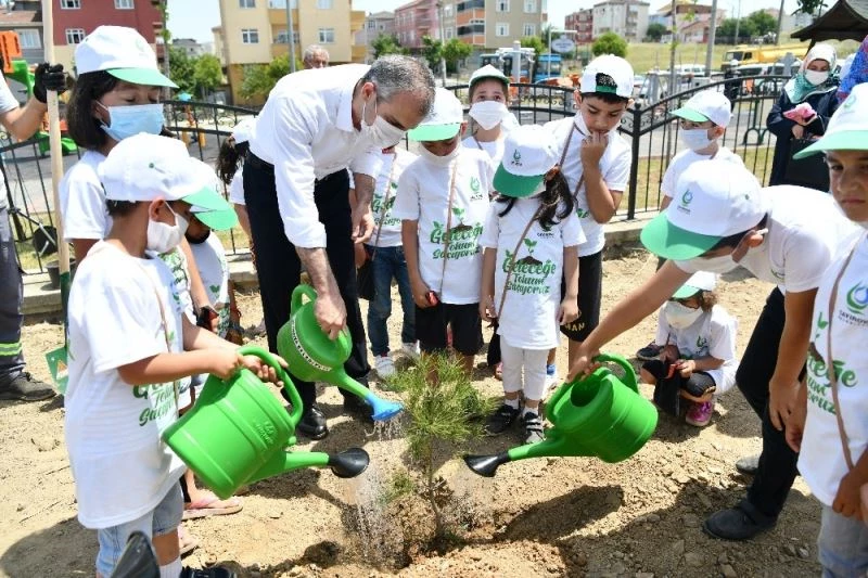 Çayırova Belediye Başkanı Bünyamin Çiftçi, uzun bir aradan sonra sokağa çıkan çocuklarla fidan dikerek yerli tohum ekti.