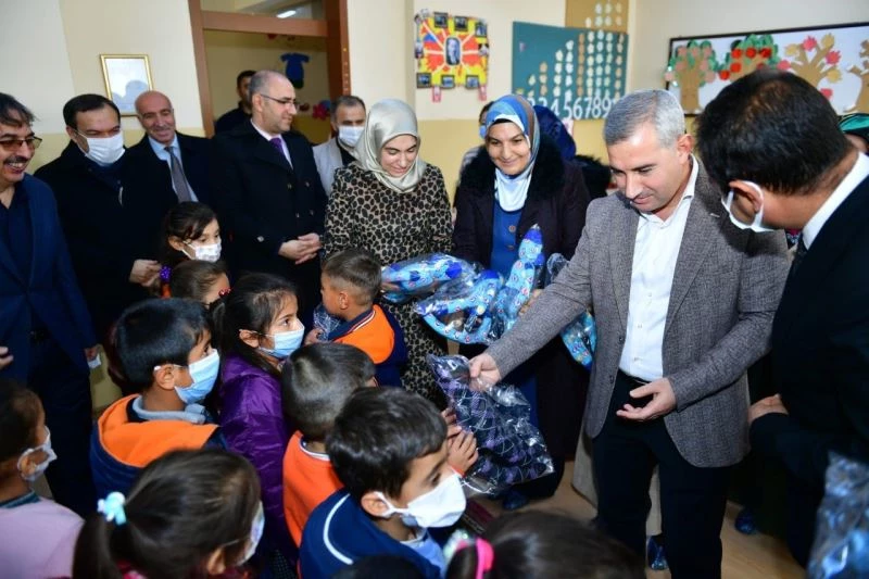 Yeşilyurt İlçe Milli Eğitim Müdürü Cemal Kalay, Yeşilyurt Belediye Meclis Üyeleri ve AK Parti Yeşilyurt Gençlik Kolları Başkanı Salih Tav’ın da yer aldığı ziyarette sınıfları tek tek dolaşan Yeşilyurt Belediye Başkanı Mehmet Çınar, minik öğrencilere oyuncak, kitap ve boyama seti ile satranç takımı hediye etti.
