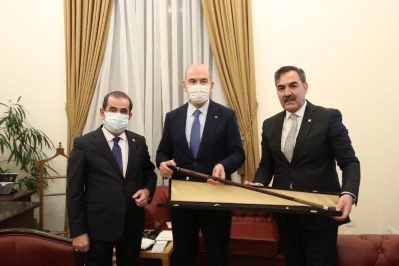 Bitlis’in Ahlat Belediye Başkanı Abdullaim Mümtaz Çoban, AK Parti Bitlis Milletvekili Cemal Taşar ile birlikte İçişleri Bakanı Süleyman Soylu’yu makamında ziyaret etti.