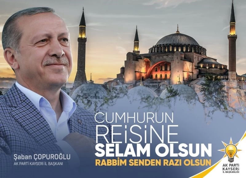 AK Parti Kayseri İl Başkanı Şaban Çopuroğlu, Ayasofya’nın ibadete açılması ile ilgili yaptığı açıklamasında, “86 yıl aradan sonra Ayasofya, cemaatine kavuştu” dedi.