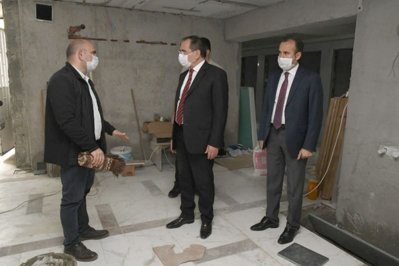Başkan Mustafa Demir, daha sonra Büyük Cami’nin restorasyon çalışmaları süren kısımlarında incelemelerde bulundu.