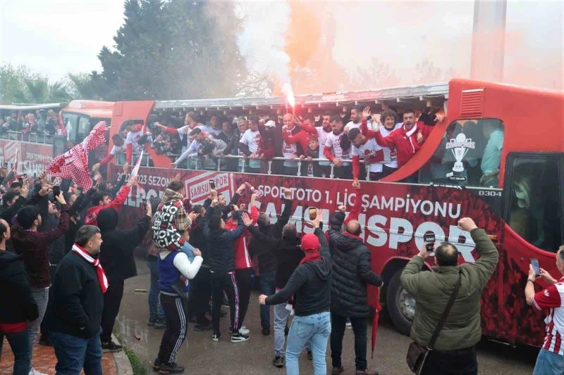 Spor Toto 1’nci Lig’in 34’üncü haftasında Ankara Keçiörengücü’nü sahasında 4-1 yenen Samsunspor, ligin bitimine 4 hafta kala şampiyonluğunu ilan etmesinin ardından kentteki coşku sürüyor. Samsun Büyükşehir Belediyesi tarafından dün Cumhuriyet Meydanı’nda organize edilen şampiyonluk kutlamasında taraftarların heyecanı doruğa çıktı. Samsunspor’un şampiyonluğu kentte her alanda heyecana neden olurken Büyükşehir Belediye Başkanı Mustafa Demir de bir kere daha Samsunspor’u bu büyük başarıdan dolayı tebrik etti.