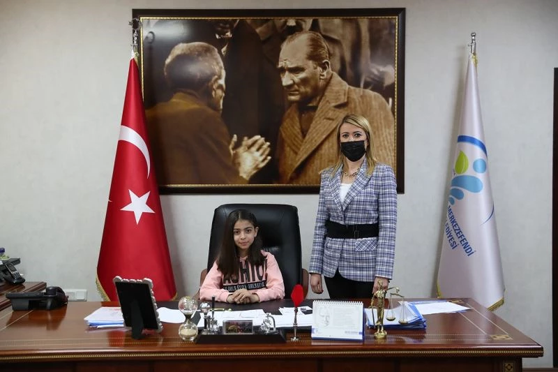 Merkezefendi Belediyesi’nde 23 Nisan Ulusal Egemenlik ve Çocuk Bayramı öncesinde tüm çocukları temsilen başkanlık makamının konukları Merve Cengiz ve görme engelli İbrahim Koç oldu. Başkan Doğan, ziyarette makam koltuğunu Merve ve İbrahim’e sırayla devretti. Minik başkanlar kendilerine bu bayramı hediye eden Ulu Önder Gazi Mustafa Kemal Atatürk’e minnettar olduklarını ifade ettiler. Temsili başkanlar, Merkezefendi Belediye Başkan Yardımcısı Fatih Coşkun ile telefonda görüşerek park sayılarının arttırılmasını talep ettiler. İbrahim Koç, belediyenin çocuklar için yaptığı sosyal ve kültürel çalışmaların daha da çok olmasını ve çocukların her zaman mutlu edilmesini istedi. Merve Cengiz de ileride belediye başkanı olmak istediğini belirtti. Mutlu ve heyecanlı oldukları gözlerinden okunan çocuklar Merkezefendi Belediye Başkanı Şeniz Doğan’a kendilerine bu imkânı sağladığı için teşekkür ettiler. Başkan Doğan Merve Cengiz’e Nutuk, İbrahim Koç’a da çeşitli hediyeler armağan etti.