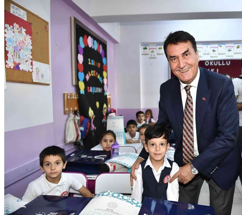 Osmangazi Belediye Başkanı Mustafa Dündar, öğrencilere kırtasiye seti, öğretmenlere ise kalem hediye etti.