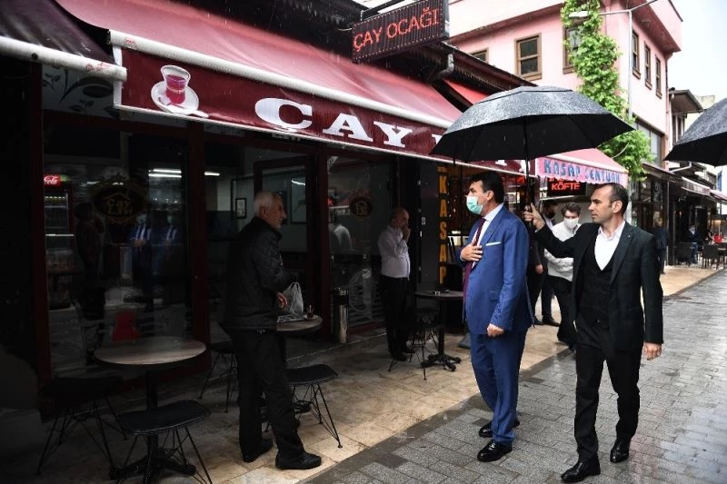 Belediye Başkanı Mustafa Dündar, korona virüs tedbirleri kapsamında uzun süredir iş yerlerini kapalı tutan ve sosyal hayatın başladığı yeni dönemin ilk gününde kepenklerini açan esnafı ziyaret etti. Başkan Dündar, AK Parti Osmangazi İlçe Başkanı Ufuk Cömez ile birlikte ilk iş günlerinde Kayhan Çarşısı esnafını tek tek gezdi. Esnafa maske ve dezenfektan dağıtan Başkan Dündar, maske kullanımı, sosyal mesafe ve hijyen konusunda dikkatli davranılması gerektiğine dikkat çekti.