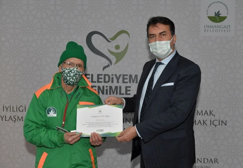Osmangazi Belediye Başkanı Mustafa Dündar, pandemi sürecinde özveriyle çalışan belediye personeline teşekkür belgesi verdi. Dünyanın çok büyük bir imtihandan geçtiğini belirten Başkan Dündar, el birliğiyle sağlıklı günlere geri dönüleceğini söyledi.