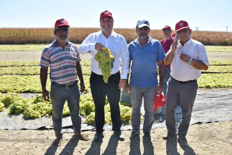 Zor hava koşullarında çalışan çiftçilere şapka dağıtan Başkan Besim Dutlulu, “Alın teri ve emeğiyle üreten, ülke ekonomimize katkı sağlayan çiftçilerimizin her zaman yanındayız. Manisa’mızın ve Akhisar’ımızın üzümü lezzeti ve kalitesi ile dünyaca bilinmektedir. Akhisar Ovası’nda çok verimli tarım arazilerine sahibiz. Tarımsal üretim yapan mahallelerimiz bizim en kıymetli yerlerimiz. Bu alanları korumak ve geliştirmek için var gücümüzle çalışmaya devam ediyoruz. Hasat döneminin başlaması ile üreticilerimizi ziyaret ederek hem çiftçilerimize bol ve bereketli bir hasat dönemi diledik hem de onlarla birlikte üzüm bağlarında çalıştık. Akhisar’da yerli üreticimize destek olmaya ve onların yanında olmaya devam edeceğiz” dedi.