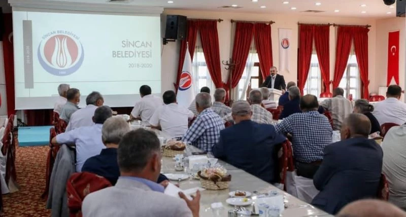 Sincan Belediye Başkanı Murat Ercan muhtarlarla bir araya geldi. Toplantıda Sincan Belediyesinin faaliyetleri ve devam eden projeler ele alınarak korona virüs sürecinde belediyenin çalışmaları masaya yatırıldı. Başkan Ercan muhtarlarla fikir alışverişinde bulunarak sorularını yanıtladı