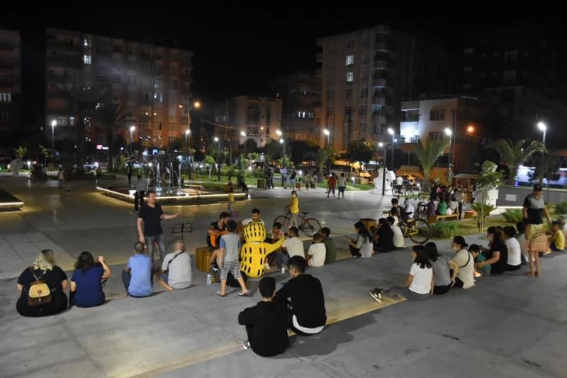 Atatürk Kent Meydanında her akşam düzenlenen vatandaşlar için canlı müzik eşliğinde vakit geçirirken, çocuklar için çizgi film karakterleriyle doyasıya eylenen Ceyhan halkı, gecenin ilerleyen saatlerine kadar meydandan ayrılmıyor.