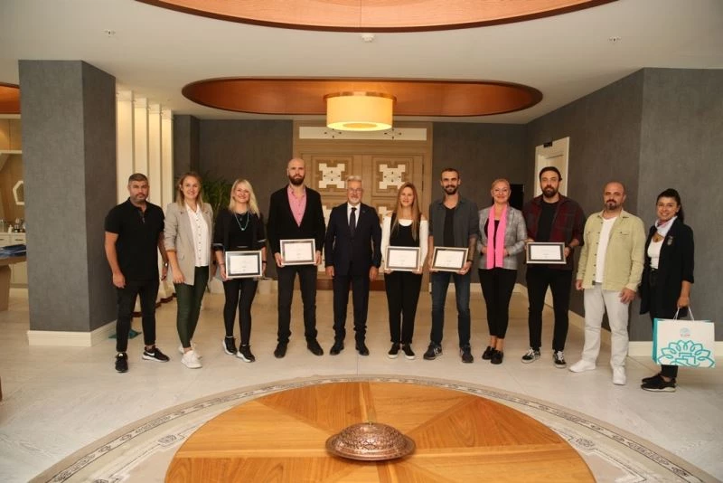 Başkan Erdem, yoga eğitmenleri Burcu Saraçoğlu, Meral Önal, Ali Hürcan ve Halit Çetintaş’ın teşekkür plaketlerini ayrı ayrı teşekkür ederek verdi. Ziyarete katılamayan Ezgican Üçlertoprağı ve Canan Emir’in plaketini arkadaşları, Nihan Yıldırım’ın plaketini de eşi eski futbolcu Sercan Yıldırım aldı.