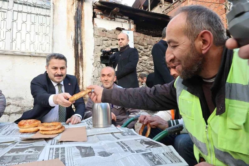 Tokat Belediye Başkanı Eyüp Eroğlu, Fen İşleri Müdürlüğü bünyesinde çalışan belediye işçilerine çay ile simit ikram ederek, “Bu şehir için alın teri akıtan, gece gündüz emek veren herkese teşekkür ediyorum” dedi.