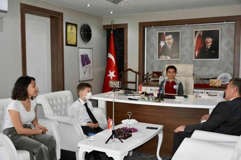 Buharkent Belediye Başkanı Mehmet Erol, 23 Nisan Ulusal Egemenlik ve Çocuk Bayramı dolayısıyla koltuğunu çocuklara bıraktı.