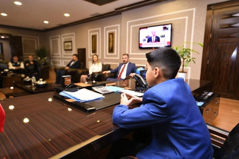 Belediye Başkanı Ertuğrul Çetin, 23 Nisan Ulusal Egemenlik ve Çocuk Bayramı dolayısıyla başkanlık koltuğunu, kendisini ziyarete gelen Berat’a bıraktı.