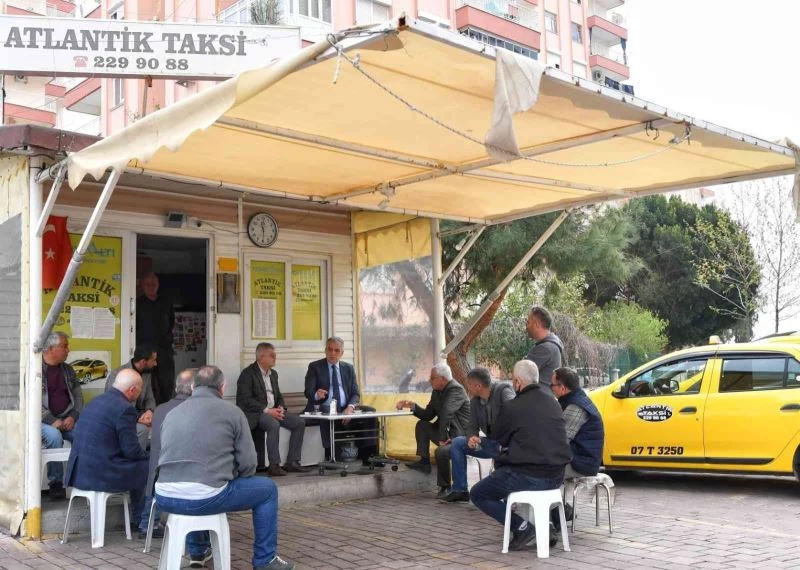 Konyaaltı Belediye Başkanı Semih Esen, Uncalı Mahallesi’nde bulunan bir taksi durağını ziyaret ederek taksi esnafının sorun ve taleplerini dinledi.