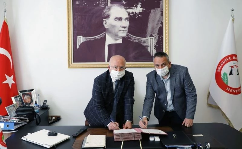 Menteşe Belediyesi ile özel bir banka arasında yapılan maaş promosyonu imza töreni Başkanlık makamında gerçekleşti.