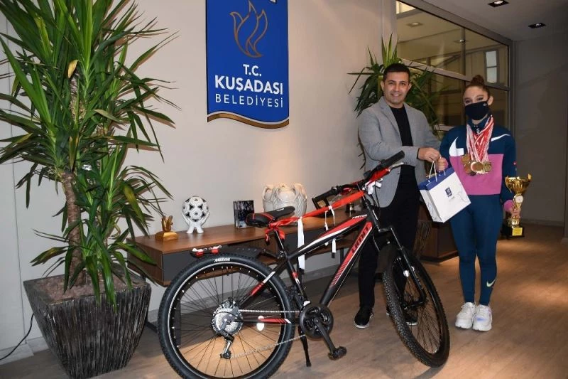 Kuşadası Belediye Başkanı Ömer Günel, “Uluslararası Ritmik Jimnastik KSIS CUP 2020” yarışmasında bronz kategorisinde dünya birincisi olan Kuşadalı Anzer Karya Karaçam’ı makamında ağırlayarak genç sporcuya bisiklet hediye etti.