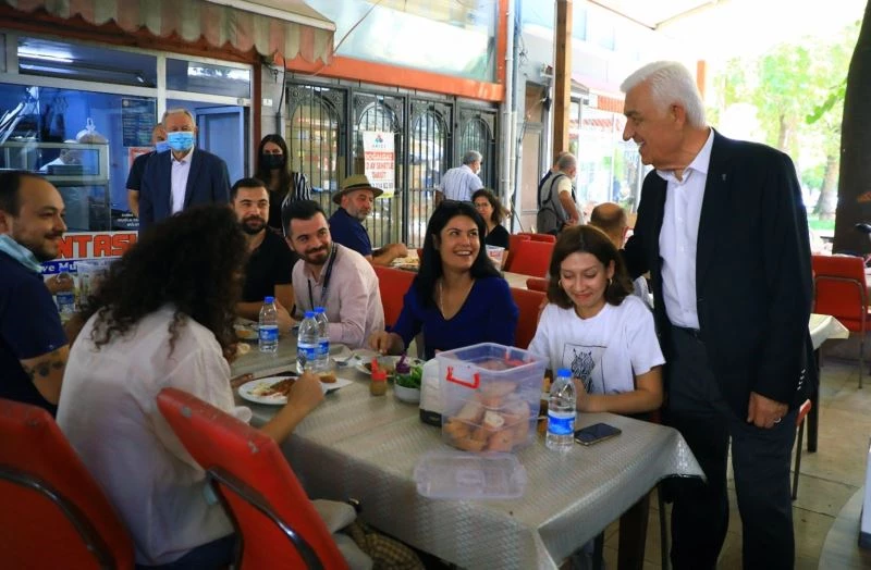 Muğla Büyükşehir Belediye Başkanı Dr. Osman Gürün ve Menteşe Belediye Başkanı Bahattin Gümüş ile birlikte esnaf ziyaretinde bulundu.
