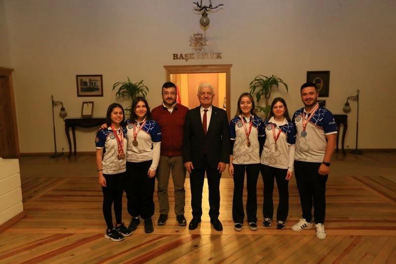 Samsun’da düzenlenen Salon Federasyonu kupası ve 2023 salon okçuluk Milli Takım seçmelerine katılan altı okçu, Muğla Büyükşehir Belediye Başkanı Dr. Osman Gürün’ü makamında ziyaret etti.