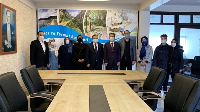 Ziyarete, İlçe Milli Eğitim Müdürü Bilal Şen, Halk Eğitim Merkezi Müdürü Süleyman Avcı ile birlikte kursiyerleri ve personelller katıldı.