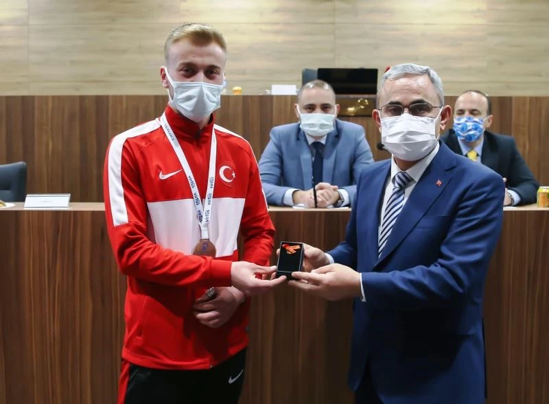 Kütahya Belediye Başkanı Alim Işık, Fransa ve Dubai’de elde ettiği başarılardan dolayı Kütahya Belediyespor ve Özel Sporcular Atletizm Milli Takım Sporcusu Oğuz Türker’i ödüllendirdi.