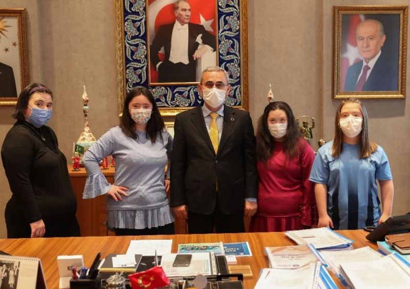 ’Dünya Down Sendromlular Farkındalık Günü’nde Kütahya Belediye Başkanı Prof. Dr. Alim Işık, makamında Kütahya Belediyesi ve Halk Eğitim Merkezi işbirliği ile faaliyetlerini yürütmekte olan ’Engelleri Sanatla Aşan Özel Bireyler Seramik Kursu’ öğrencileri ve öğretmenleri Hülya Koca’yı ağırladı.