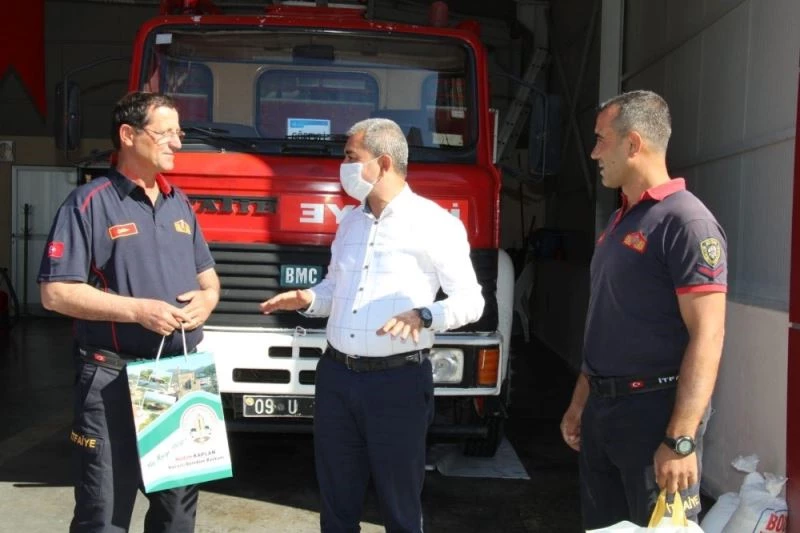Koçarlı Belediye Başkanı Nedim Kaplan, Ramazan Bayramı olmasına rağmen kamu hizmeti için görevleri başında olan emniyet, jandarma, 112 Acil Sağlık, eczane, itfaiye ve Vefa Sosyal Destek grubunu ziyaret ederek bayramlarını kutladı.